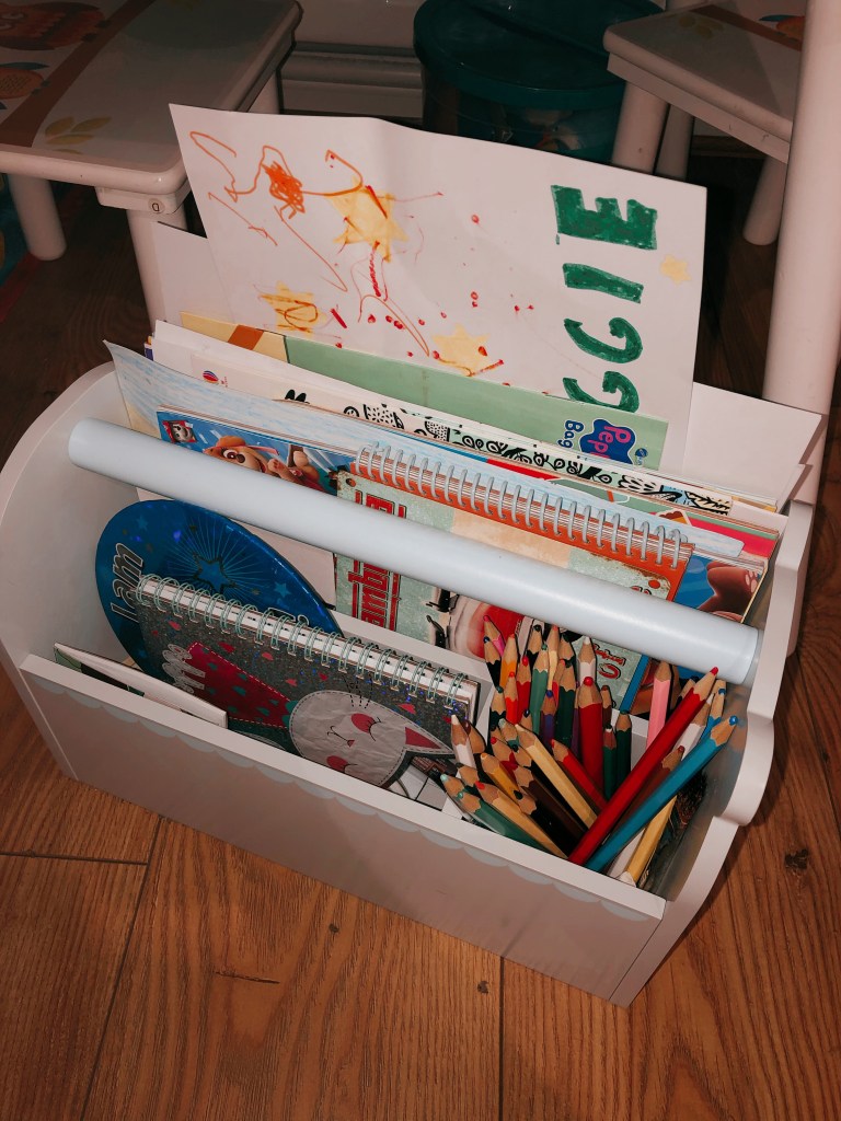 Writing Station A carry caddy full of writing materials A writing area in our living room- we have mark making opportunities everywhere!